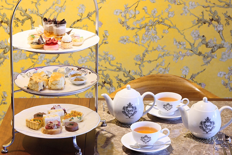 アフタヌーンティーと共にいただくのは、厳選された原料と独自のブレンドにこだわる「Dori's TEA」の紅茶。Dori's TEAは、飲む人の“時を止めるような一杯”をイメージしてつくられた、AIC秋津洲京都オリジナルのティーブランドです。季節に合わせてセレクトされた約11種類を、フリーフロー(おかわり自由)で楽しめます。