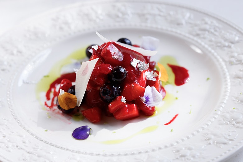 京都らしい奥ゆかしさと華やかさが調和するこの場所で提供されるのは、シェフパティシエ 木戸章吉氏が考案する、季節の素材が主役のアフタヌーンティー。木戸氏は、パティスリーや料理旅館などで腕を磨き、AIC秋津洲京都 総料理長・上島康二氏のもとで技術と感性を深めました。「フォーシーズンズホテル京都」にて上質なスイーツとおもてなしを追究したのち、AIC 秋津洲京都 清水別邸のシェフパティシエに就任した実力派です。