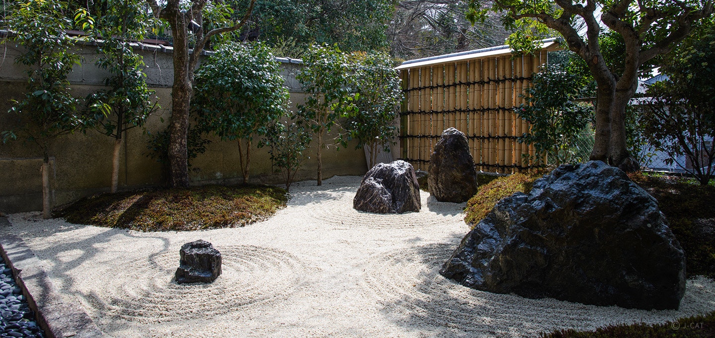 館内に一歩足を踏み入れると、そこは清水の喧騒を感じさせない、瀟洒で洗練された独自の世界。和の奥ゆかしさを感じる数寄屋建築に、洋とシノワズリ様式の華やかな演出が溶け込み、四季を移す枯山水の庭園が目を楽しませます。随所に配された美術品や調度品は、それぞれが確かな存在感を放ちながらも、空間美と見事に調和しています。