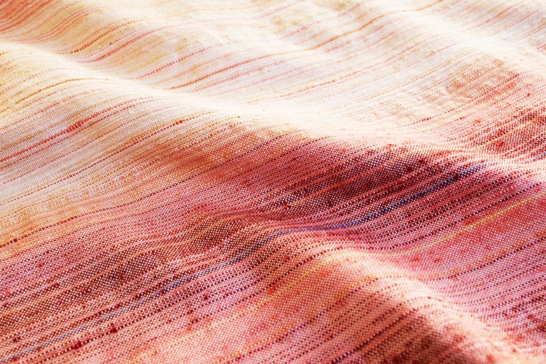 「アトリエシムラ」は、染織家で人間国宝の志村ふくみさんと、その娘で同じく染織家の洋子さんの芸術精神を継承するブランド。伝統を引き継ぐのは、ふくみさんの孫である志村昌司さんを中心とした作り手たちです。京都・嵯峨野のアトリエを拠点に、四季折々の植物から色をいただいて糸を染め、手機で着物やストール、小物などを制作しています。