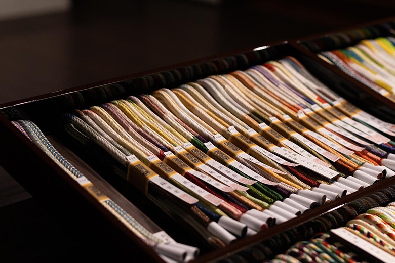 1652(承応元)年創業、上野池之端に本店を構える組紐処。創業以来さまざまな組紐製品を手染め・手組みにて製作。江戸時代以来の武士による古典研究の流れを汲みつつ、明治以降全国的に散る歴史的な組紐の調査研究も重ねる。帯締、羽織の紐といった日常使いの紐から、非日常的な儀礼用の紐、洋装用のタイやアクセサリーも取り扱う。2025年秋、京都・五条に新拠点「道明 京都店」をオープン。
