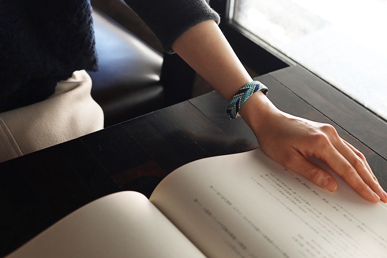 ・手染めの絹糸を使い、1000年以上の歴史を持つ技法「笹浪組」で組紐ブレスレットを制作。