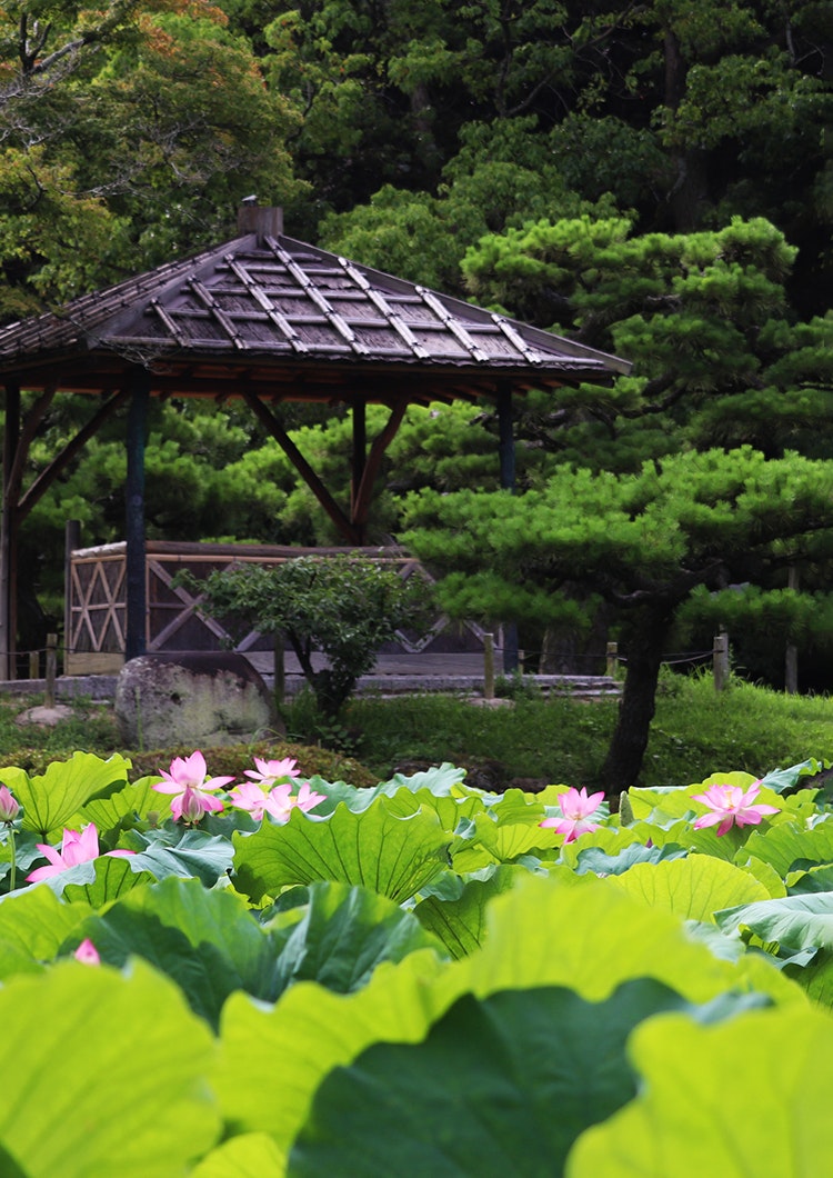 高松藩主 松平家の別邸として、歴代藩主が修築を重ね、五代百年をかけて造り上げられた。国の特別名勝に指定されている文化財庭園のなかでは、国内最大の広さをもつ回遊式大名庭園。園内を周遊しながら様々な景色を楽しむことができ、その美しさは「一歩一景」と称される。2009年に『ミシュラン・グリーンガイド・ジャポン』で三つ星を獲得。
