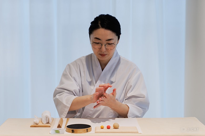 催行日時|月2日程度 11:30〜12:30 / 14:00〜15:00 ▼開催月とテーマ 2025年 11月:山茶花(捻る)/ 練切(ねりきり)製 ※終了しました 12月:銀杏(包む)/ 外郎(ういろう)製 ※終了しました 2026年 1月:花結び(結ぶ)/ 外郎(ういろう)製 ※内容は変更になる場合がございます。