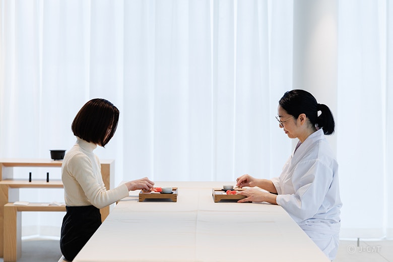 本プランの講師は、北海道余市町で約100年続く老舗「虎屋菓子店」の孫娘として生まれ、四季折々の和菓子に囲まれて育った井口いすゞ氏です。和菓子ブランド「HIGASHIYA」にて研鑽を積み、パリにある系列の複合施設「OGATA Paris」で和菓子文化を広めることにも尽力。国内外に和菓子の原点や精神文化を伝えながら、修練を重ね腕を磨いてきました。