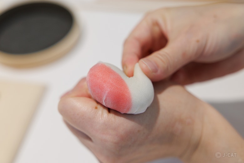 はじめに、井口氏のデモンストレーションを見学。上生菓子は色づけや形づくりがしやすいからこそ、職人の技術と感性が如実に現れるといわれているそう。井口氏の指先や手のひらの繊細な動きに、匠の技を感じるでしょう。