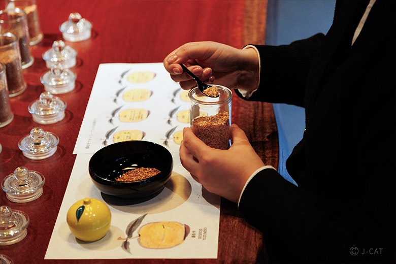 寺院の名前にちなんで用意された国産の松(栂)、料理にも使われる八角や桂皮など、個性の異なる素材が揃います。それぞれの特徴や仏教との関わりを学び、自らの心地良い香りを探りながら丁寧に調合しましょう。