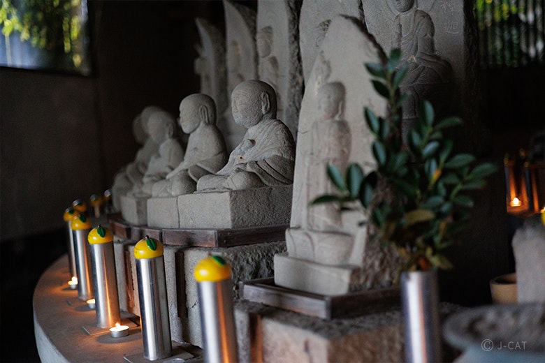 体験終了後は、境内を散策してみるのも良いでしょう。時間が許せば、河内新四国八十八カ所霊場(六角堂)へのお参りがおすすめです。四国八十八ヶ所霊場の祠を祀ったお堂で、本堂裏手の大師山にあった霊場を移動させて建立しました。一願成就の立江地蔵菩薩を中心に、それぞれの霊場のご本尊、そして弘法大師が祀られており、右回りに巡ることで全霊場を参拝した功徳を得られるといわれます。