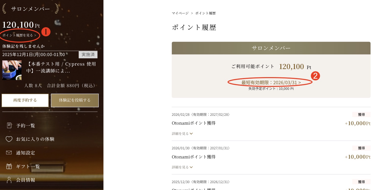 ポイントの使用履歴や有効期限はどこから確認できますか?
