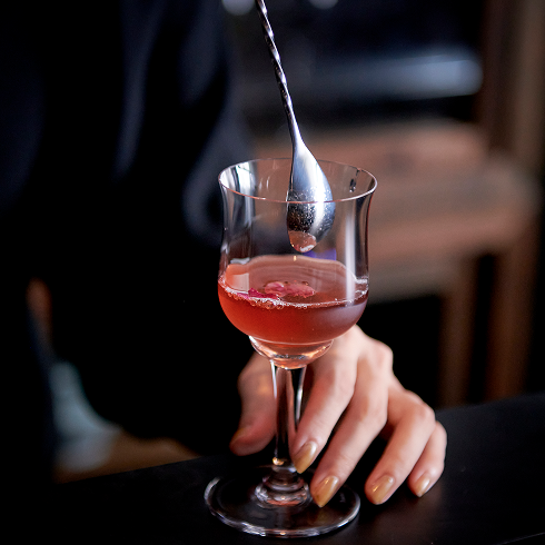 グラスを片手に宵のひとときを楽しむ。