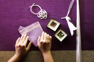 滋賀「湖香六根」紫根染め&折形・水引制作と養生点心を楽しむ −紫根の自然派コスメ付き−
