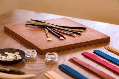 上質な革で仕立てる一点物のタッセルチャーム −神楽坂のアトリエ「Belpasso」にて−