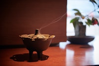 茶をたしなみ花を生ける、おもてなしの精進懐石